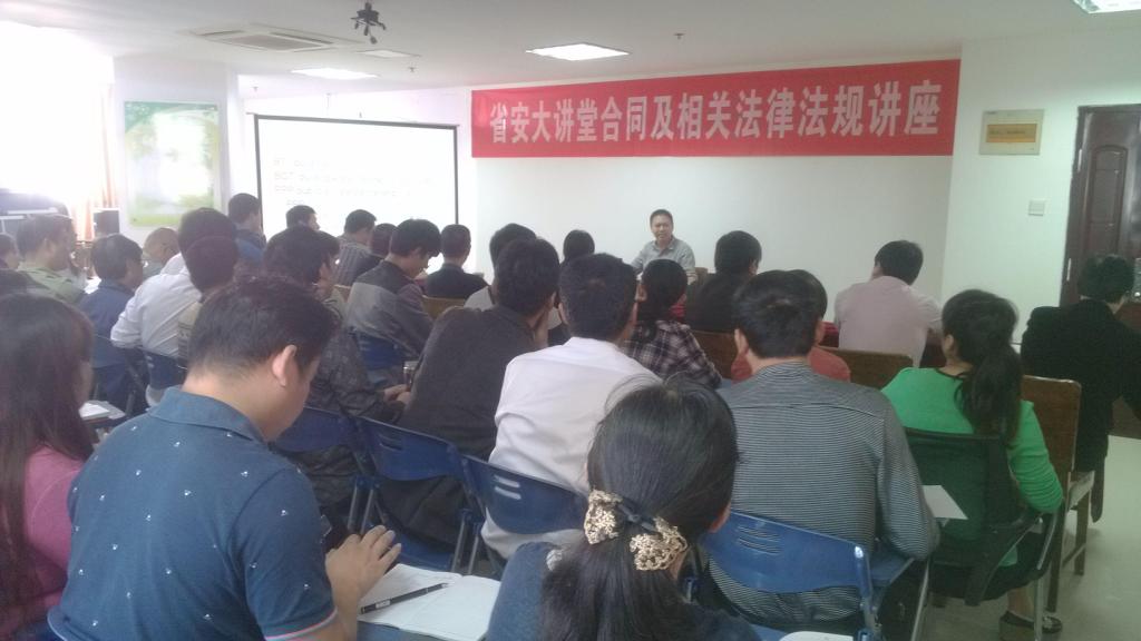 10月24日上午,省安大講堂“合同及相關(guān)法律法規(guī)專題講座”在公司職工之家如期舉行。本期講座邀請了集團公司總法律顧問申玉恩為大家授課。公司黨委書記、紀(jì)委書記胡六中,工會主席李原,公司機關(guān)及分公司中層以上管理人員、相關(guān)部門員工70余人參加了培訓(xùn)。