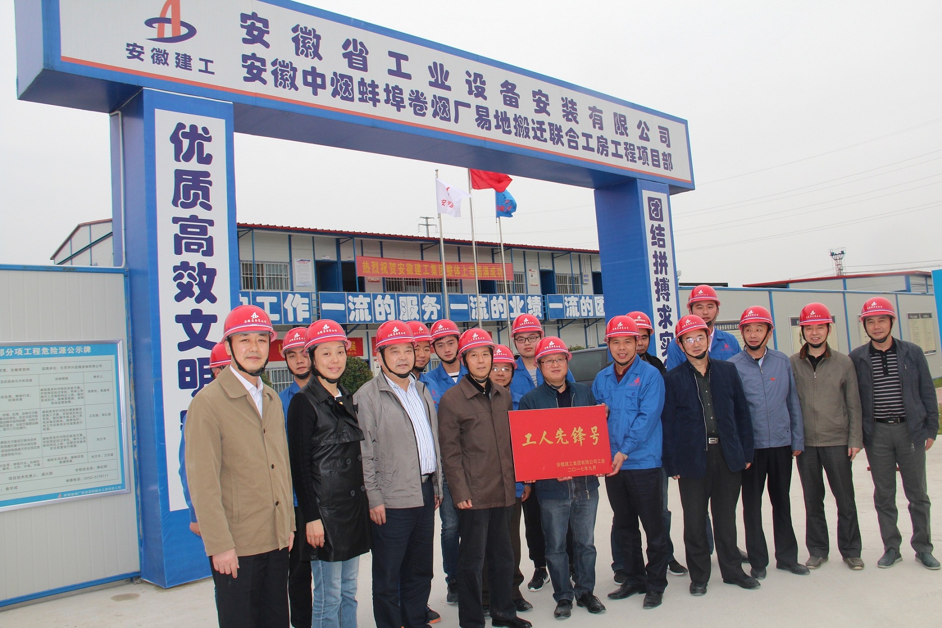 10月16日,由集團公司工會主席徐曉光率隊,安徽交航紀委書記、工會主席李楊,安建地產工會主席龍華組成的驗評組,赴安徽安裝蚌埠卷煙廠項目進行集團“工人先鋒號”創建工作考核驗評并授牌。安徽安裝董事長、總經理王軍邦,黨委書記胡六中,紀委書記、工會主席李寬旭,蚌埠分公司領導班子成員等人陪同檢查。