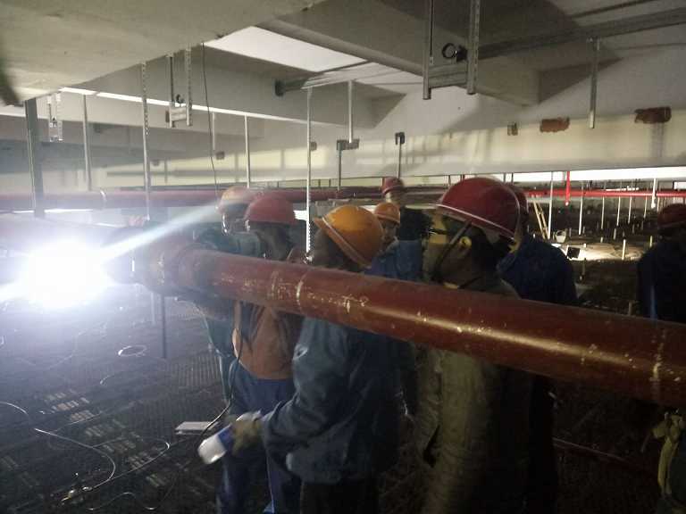 11月28日下午,公司副總經理劉安俊一行蒞臨安徽中煙工業蚌埠卷煙廠易地搬遷項目部檢查指導工作。他首先檢查了項目部管理人員在崗情況,隨后不辭辛苦深入施工現場,來到每一個施工班組,每一個施工點檢查指導。特別是在高架庫屋面板消防噴淋施工點,滿堂腳手架,空間施工高度21米,劉安俊親自登上最高處施工平臺進行指導。項目執行經理郭洋等陪同檢查并就現場項目的管理工作及存在的困難做了匯報。
