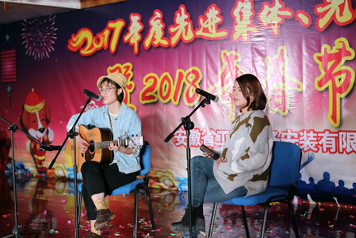 整場聯歡會由音歌快板、情景劇、小品、詩朗誦、舞蹈、才藝表演、女聲獨唱等12個節目組成,均為職工自編自導自演。伴隨著悅耳動聽的音歌快板表演《企業興旺我自豪》,聯歡會正式拉開序幕。情景劇《我驕傲 我是省安人》,反映了安徽安裝人用勤勞和汗水,創造了一個個值得驕傲的碩果;詩朗誦《風雨同行 以心筑夢》,展現了安徽安裝人不斷開拓新市場,實現新突破的壯麗征程;舞蹈《精忠報國》,傳遞了安徽安裝人激昂豪邁,強烈愛國主義的情懷;情景劇《擼起袖子加油干》,表達了安徽安裝人不忘初心,團結一致砥礪奮進的決心;男生合唱《明天會更好》,抒發了全體安徽安裝兒女同心同德,共筑企業燦爛明天的美好心愿,歡快的音符,優美的旋律,振奮的歌詞,贏得了現場觀眾的歡呼喝彩與陣陣掌聲,將現場的氣氛推向高潮。演出過程中還穿插了抽獎和游戲環節。
