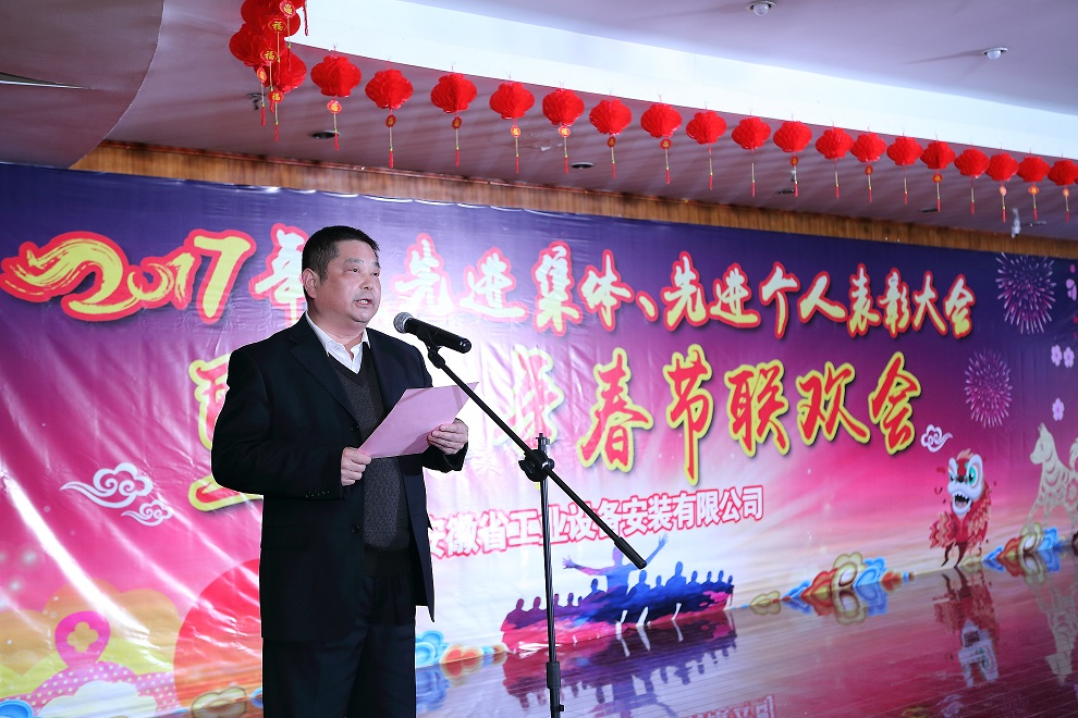 公司董事長、總經理王軍邦發表了熱情洋溢的新年致辭。他指出,2017年,集團公司整體上市成功,公司作為集團產業鏈安裝板塊的重要一環,順利實現整體上市。公司上下緊扣發展第一要務,聚精會神抓黨建,一心一意謀發展,團結奮進,扎實工作,實現產值12.28億元,合同額15.52億元,利潤突破千萬元,創歷史新高;新疆市場進一步開拓,承接了安裝公司有史以來最大的新疆烏蘇管廊項目3.59億元。在集團的大力支持下,中標新疆市場博爾塔拉蒙古自治州兩個PPP項目,共計39.79億元,全面超額完成年度各項指標任務。這些成績的取得凝聚著安徽安裝人的心血和汗水,是我們眾志成城、頑強拼搏、砥礪奮進的結果;2018年,讓我們統一思想、齊心協力,用智慧、靠實干、憑業績,主動作為,為開創安徽安裝發展新局面而持續奮斗!