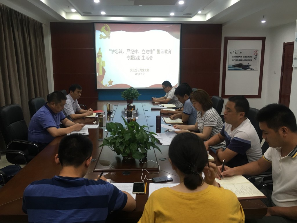 安慶分公司黨支部組織召開“講忠誠、嚴紀律、立政德”警示教育專題組織生活會