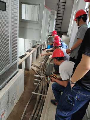 公司檢查組來到項目部后,首先聽取了項目部作的項目運行情況的總體匯報,內容包括項目目標管理責任書簽訂、項目策劃、進度、物資設備、勞務隊伍、技術、質量、安全、合同、成本、資金管理以及“質量月”活動的進展情況等。接著檢查組來到了施工現場對配電房變壓器、高低壓配電柜及成套設備、室外電纜分支箱、電纜敷設等施工安裝情況的進行了檢查,并提出了不足,給予規范要求。