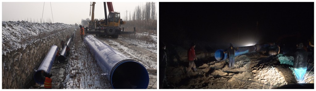 該工程是在野外長距離作業(yè),管道沿途需要穿過高速、省道、鐵路、亞歐光纜及眾多鄉(xiāng)村道路和田間陰溝,施工區(qū)域內(nèi)有農(nóng)田、戈壁、沙漠,沼澤等,自然環(huán)境極其惡劣,施工地質(zhì)極為復(fù)雜。尤其在步入11月,新疆烏蘇市正式進入寒冬季節(jié),期間平均氣溫都在零下十度以下,并時常飛舞著雪花,由于晝夜溫差大,夜間項目上的氣溫更是達到零下二三十度,這給項目部施工帶來了嚴重挑戰(zhàn),但項目部員工沒有被惡劣的環(huán)境所嚇倒,他們“逢山開路、遇水搭橋”,努力克服各方面不利因素,合理安排施工進度計劃。全體職工發(fā)揚安徽建工人“特別能吃苦,特別能戰(zhàn)斗”的企業(yè)作風(fēng),在公司“大干60天”勞動競賽的正向激勵下,不畏環(huán)境艱苦,抓質(zhì)量,保安全,戰(zhàn)荒漠,斗嚴寒,每天堅持戰(zhàn)斗在生產(chǎn)第一線,哪里有施工,哪里就有管理人員的堅定身影。