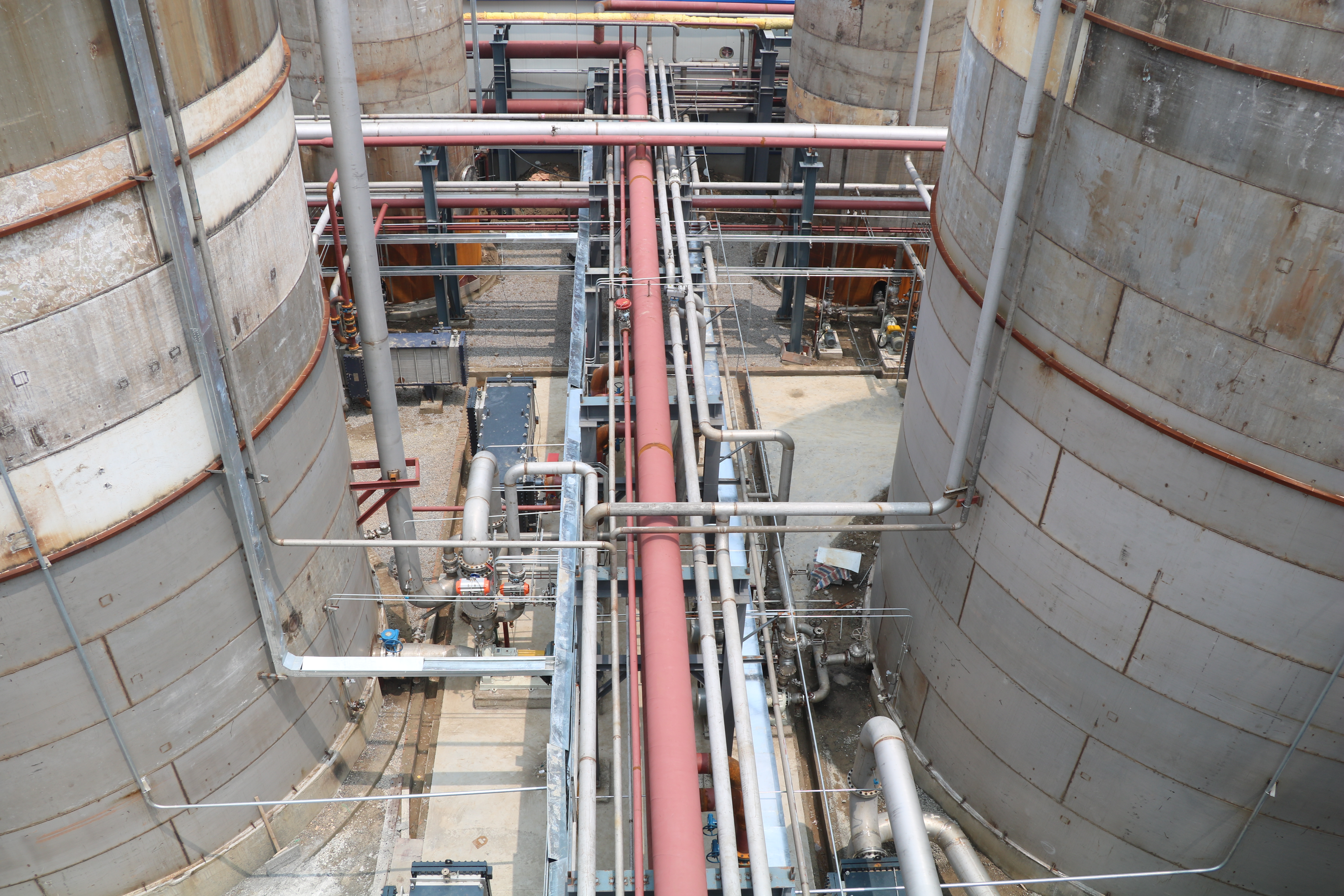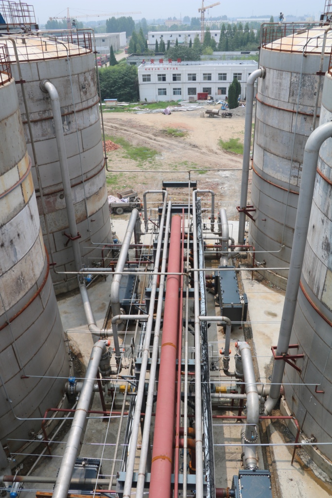 201810月,蚌埠分公司中標宿州中糧無水乙醇搬遷技改項目。該項目為發酵工序區域以及酒精罐區、混配站裝置區域裝置利舊設備拆遷(保護性拆除)轉運(含各類罐22臺、離心機組3套)非標設備制作安裝,設備總重量約1055噸,工藝管道約4500米及電氣儀表專業施工。工程總造價1584萬元。