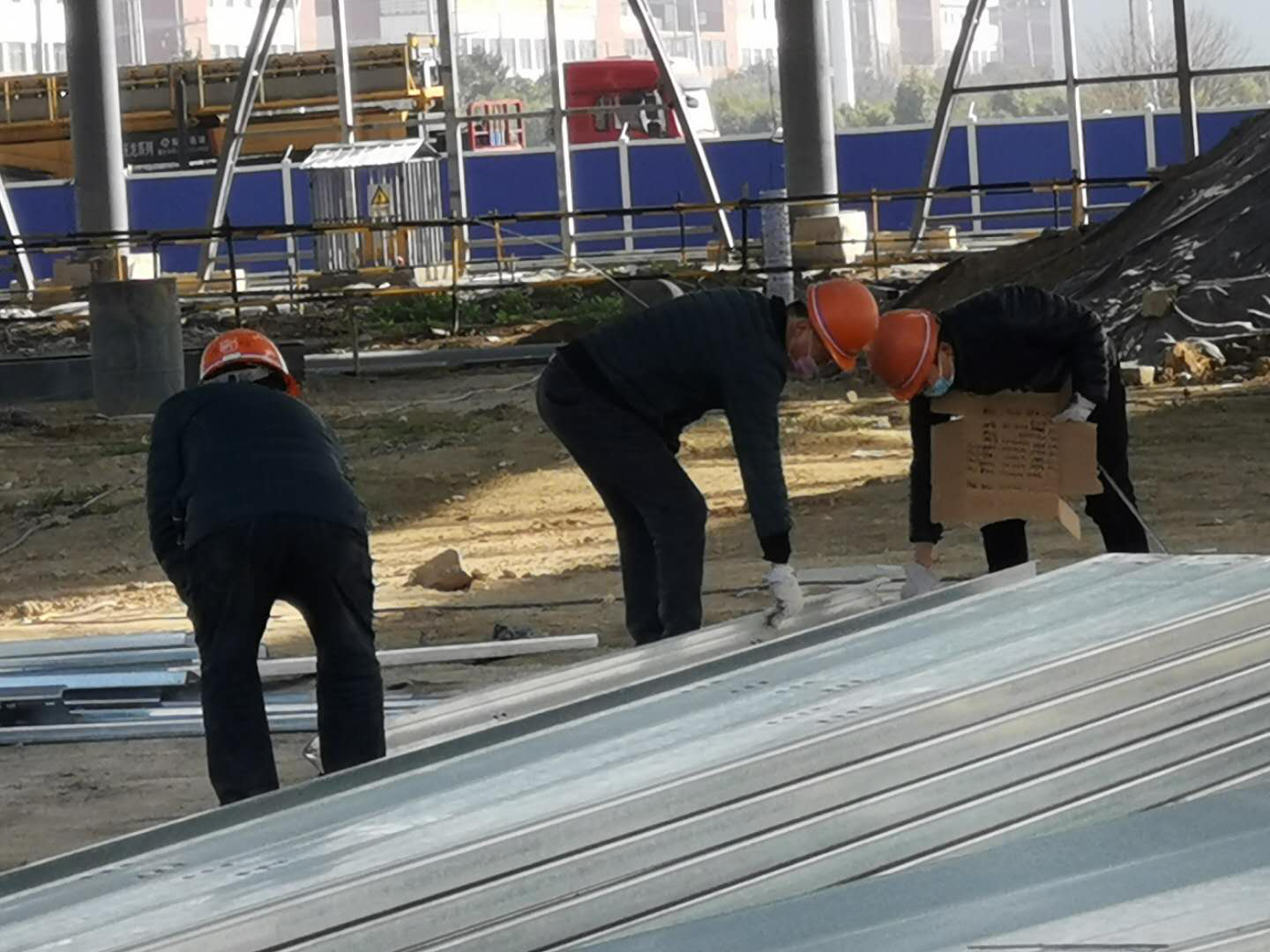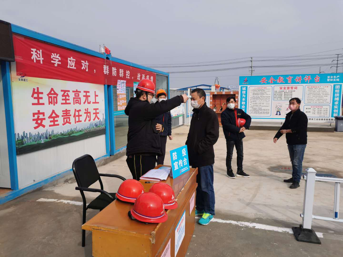 “同志,請登記、測量體溫,并配合將雙手、衣物進行消毒……”來到工地入口處時,被工地的值班人員攔住,要求做體溫檢測。值班人員介紹,整個施工場地采用全封閉式管理,設置專人值守,每天進出的工人必須要戴口罩,經過體溫測量顯示正常,并經過登記、消毒殺毒等程序后才可以進工地。