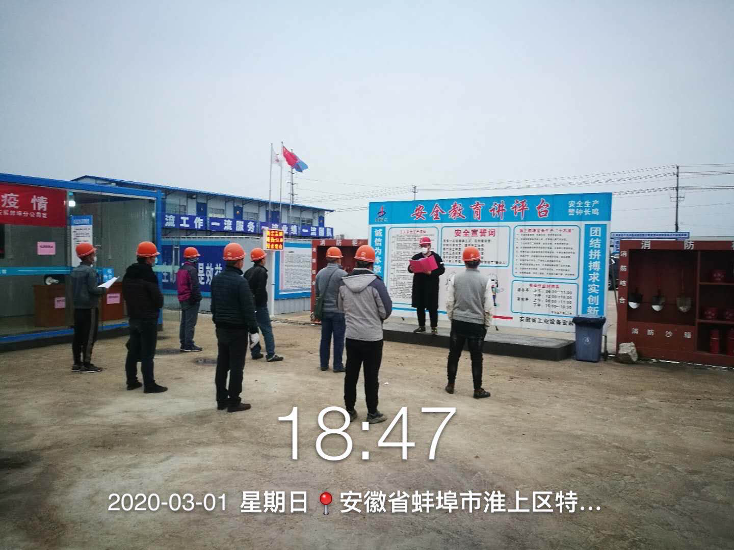 3月3日上午,在安徽安裝公司承建的淮河試驗中心工程現場看到,“戴口罩、勤洗手、多通風、少走動、常消毒”,一張張疫情防控的宣傳標語被張貼在顯眼位置,同時電焊、吊車、噴漆機等機械響聲不斷,一群群佩戴著口罩的工人正在加緊施工……