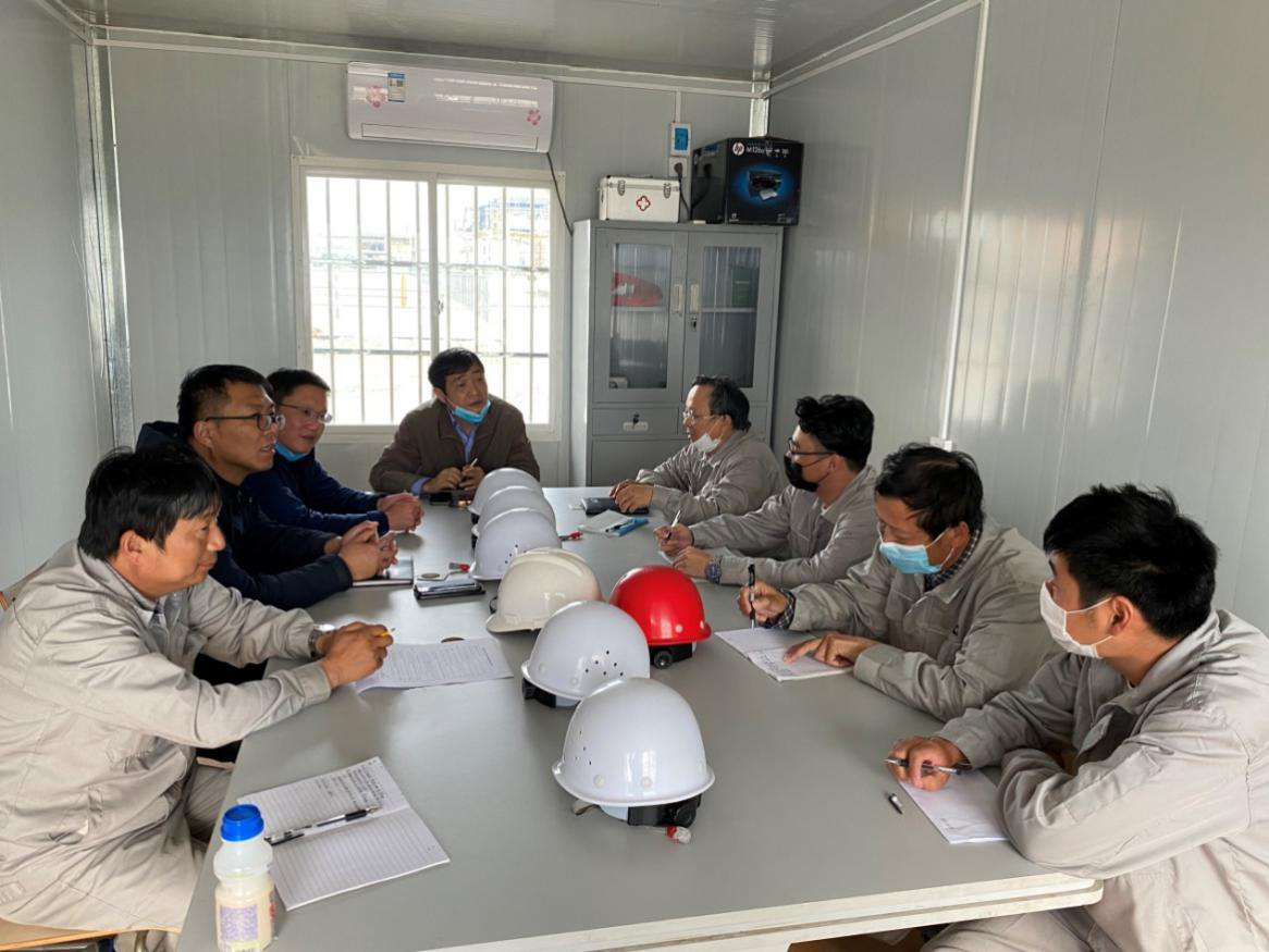 會上,項目部就復工復產、疫情防控、項目進展等方面進行了詳細匯報。劉安俊首先代表公司對工作在艱苦的項目一線全體員工表示慰問,對項目部面對復雜多變的施工環境迎難而上所做的大量工作給予肯定。在聽取項目部就復工復產、疫情防控、項目進展等方面的詳細匯報后,對存在的問題逐一提出了解決方案。
