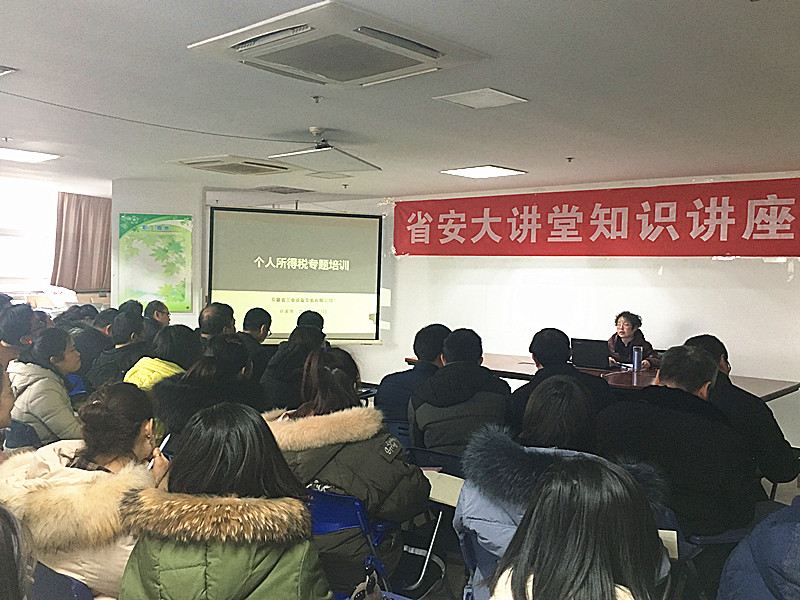 2月21日下午“省安大講堂”—個(gè)人所得稅專(zhuān)題培訓(xùn)在職工之家開(kāi)課。本次培訓(xùn)由財(cái)務(wù)部經(jīng)理許素寒授課,公司機(jī)關(guān)、分公司相關(guān)人員共80余人參加。