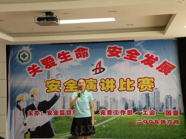 我公司選派的參賽選手姚春靜同志,以一場(chǎng)“生命之歌、安全之路”的精彩演講,博得現(xiàn)場(chǎng)聽眾的陣陣掌聲,最終獲得了一等獎(jiǎng)的好成績(jī)。