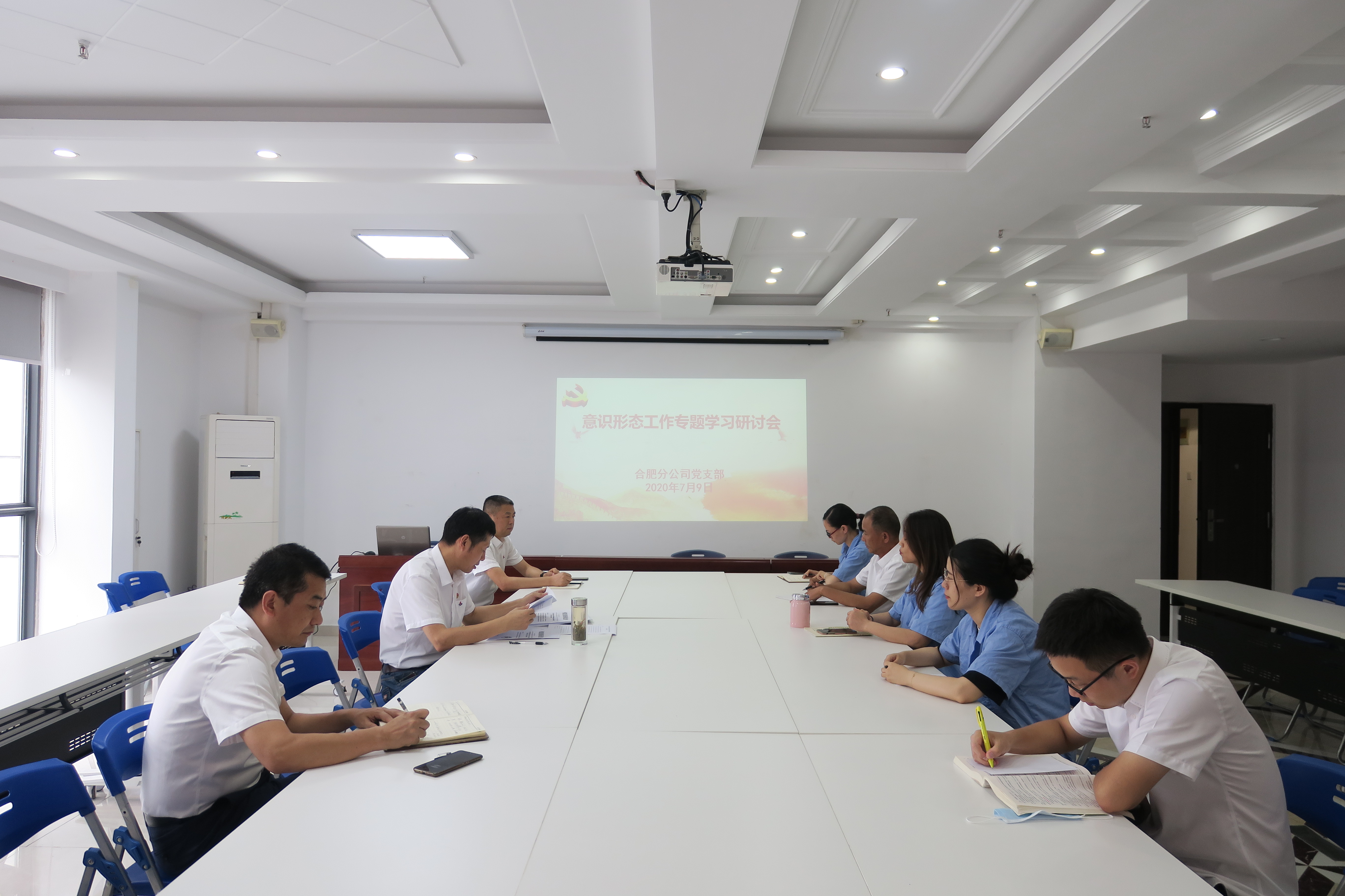 為進一步加強和改進意識形態工作,落實黨管意識形態原則,7月9日下午,合肥分公司黨支部組織開展意識形態工作專題學習研討會,分公司領導班子成員、支委委員、工會及共青團負責同志參會,會議由黨支部書記胡迎東主持。