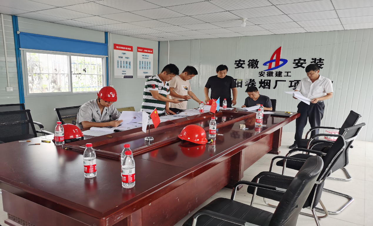 8月20日上午,業主方阜陽卷煙廠易地技改項目指揮部組長邱云峰、副組長劉朝晨及項目相關管理人員一行到到安徽安裝阜陽卷煙廠易地技改項目部進行安全檢查。