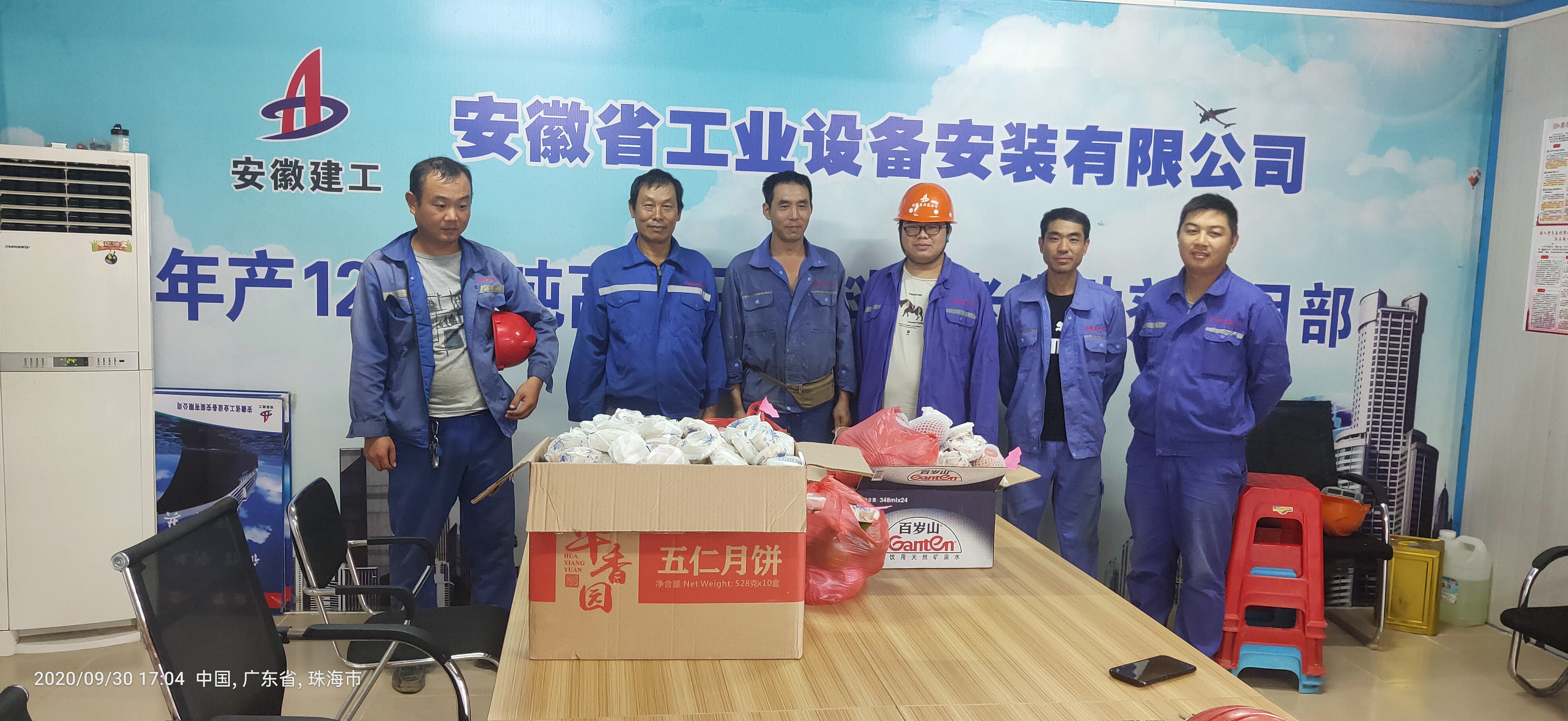 9月30日,在2020年中秋節國慶節“雙節”來臨之際,西北分公司珠海利安隆項目部組織開展了“雙節”送溫暖活動——為仍奮斗在一線項目建設者們送上了一份節日的祝福。