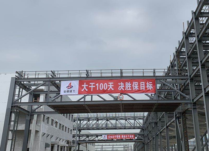 項目部以進度為主線、生產(chǎn)為動力、安全為保障,將所有施工專業(yè)力量擰成一股繩,以“嚴把質(zhì)量、嚴控安全,積極擴大施工作業(yè)面,合理布局、相互配合,全力組織推動各項施工按節(jié)點完成”為總目標,“埋頭苦干100天,砥礪奮進出成效”,做到保時間、保節(jié)點、出成效。