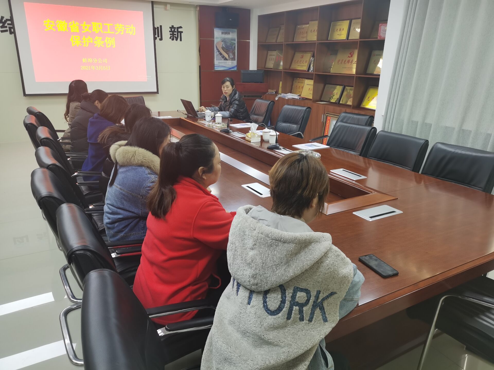 陽春三月,百草初醒,萬木崢嶸,值此第“111”個三八國際勞動婦女節(jié)來臨之際,3月5日下午,蚌埠分公司工會開展了《女職工勞動保護特別規(guī)定》知識講座活動。講座由分公司黨支部書記程茂麗組織,分公司全體女職工聆聽講座。