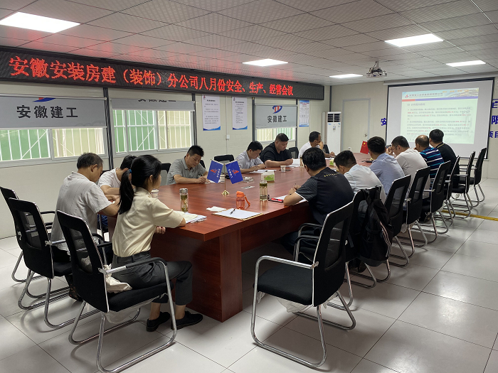 8月28日,房建(裝飾)分公司在潤迅數據中心(合肥)產業園項目部召開8月生產、安全、經營工作會議,分公司領導班子成員、所屬各項目主要負責人、機關各部門負責人及工程管理部全體成員參加會議,會議由分公司副經理徐明東主持。