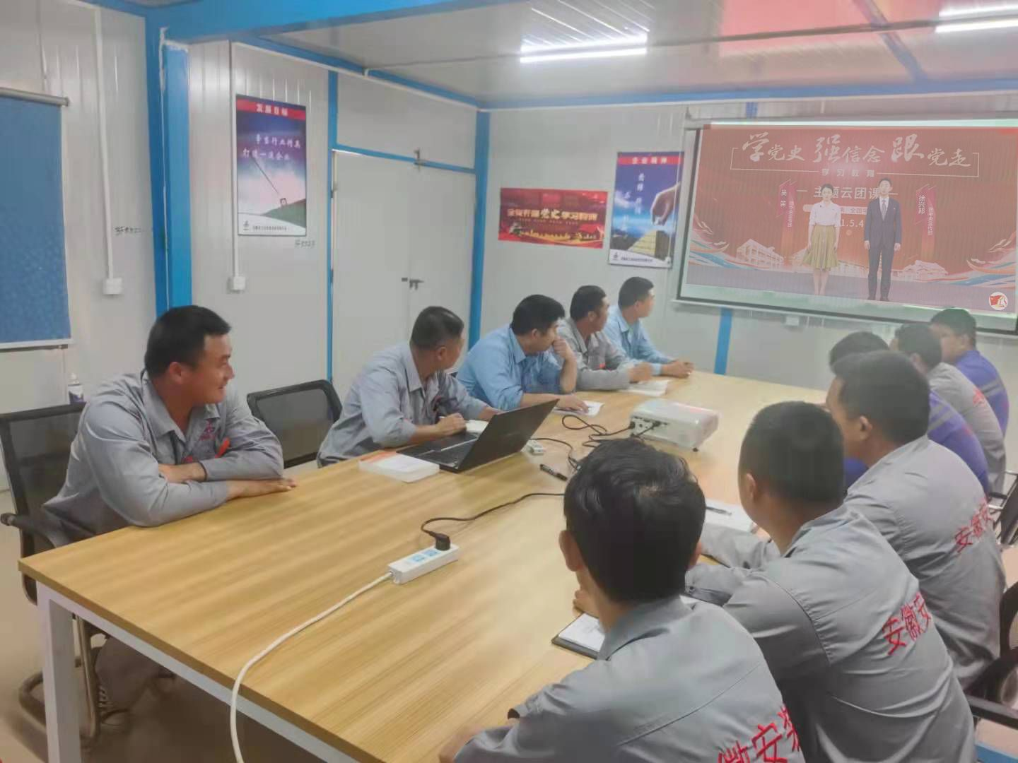 項目部積極響應公司黨史學習教育要求,促進黨史學習充分融入生產一線,營造出濃厚的“學黨史、促生產”的良好氛圍。5月1日,項目部開展了黨史學習教育交流會,會上項目部黨員皮軍同志帶領大家集中學習了《中國共產黨基本知識》并開展了黨史學習交流討論。5月4日,項目部組織團員青年通過線上觀看節目的方式觀看了由共青團中央、全國學聯舉辦的“學黨史、強信念、跟黨走”大型網絡直播主題云團課學習活動,在歌聲中感受激情燃燒的光輝歲月,在影像影視中見證時代的發展、歷史的變遷。