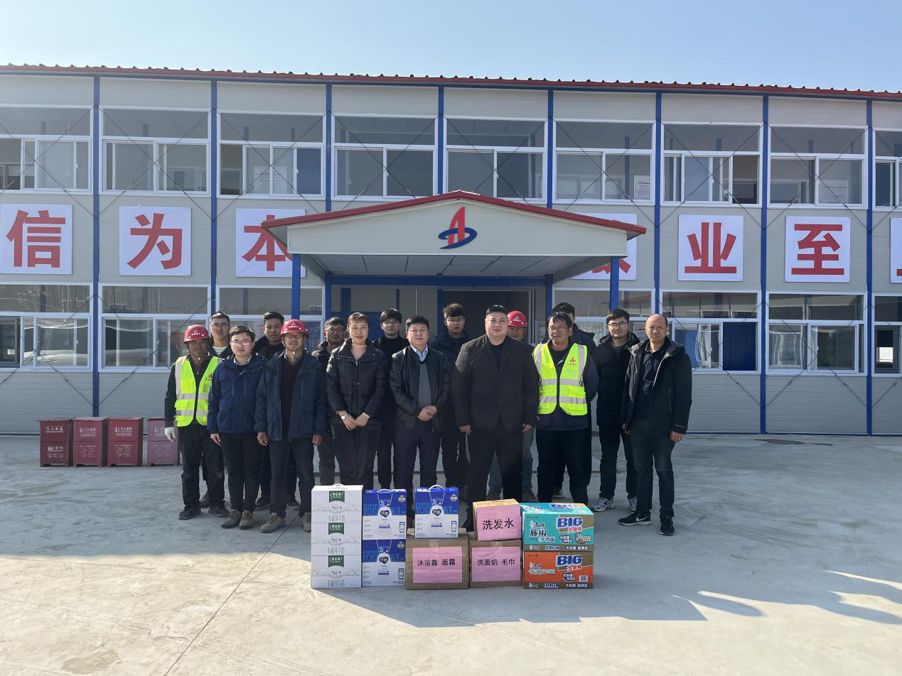 寒冬送溫暖,關愛暖人心。分公司經(jīng)理許杰、黨支部書記王偉親手將慰問品送到了每一位堅守奮斗在一線的項目職工的手中,并與項目職工展開親切交流,詳細了解施工人員的生活情況,并對冬季取暖安全提出了要求。叮囑大家冬天室外作業(yè)天氣冷、施工跨度大、危險源多,一定要遵守施工安全管理規(guī)范,注重人身安全和身體健康,在保證施工生產(chǎn)進度的同時,能夠度過一個安全、健康、溫暖的冬季;通過與一線員工談心談話,進一步了解職工的生活冷暖、家庭情況,并幫助職工解答公司近期工作法規(guī)特別是現(xiàn)階段新冠疫情常態(tài)化管理情況下的返鄉(xiāng)政策,把溫暖不僅送到了職工的手中,還送到了職工的心里。