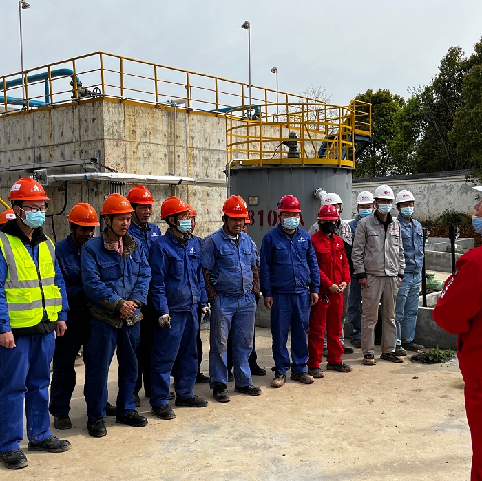 此次演練預設內容為安慶石化廠區施工現場正在運行中的管道硫化氫泄漏,演練活動正式開始,巡檢人員發現情況后立即上報應急小組總指揮,接到報告后,項目部立即啟動應急預案,應急小組成員緊急就位,警戒硫化氫泄漏區域,在現場設置疏散通道,在周邊路口設置警戒隔離,防止人員車輛靠近,指揮現場作業人員有序撤離,引導工人到指定集合點集合,人員到達集合點后清點人數,并向應急總指揮匯報人員撤離情況及身體狀況。演練結束后,分公司安全部負責人肖健組織所有參加演練人員進行總結。