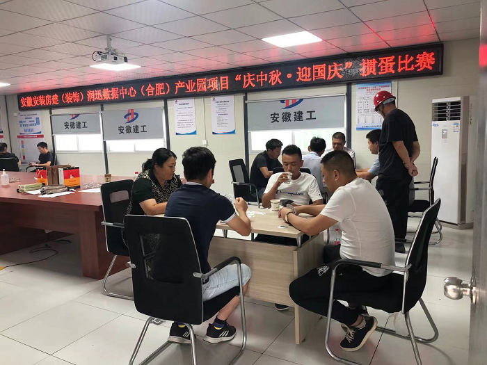9月20日下午,房建(裝飾)分公司潤(rùn)迅數(shù)據(jù)中心(合肥)產(chǎn)業(yè)園項(xiàng)目舉辦了“歡樂中秋·喜迎國(guó)慶”摜蛋比賽。比賽以抽簽的形式組隊(duì),4人分為一組開始PK,采用淘汰制的方式進(jìn)行,每輪比賽采用一局決勝。比賽中,選手們充分發(fā)揮“友誼第一,比賽第二”的體育精神,賽出了智慧,比出了水平。