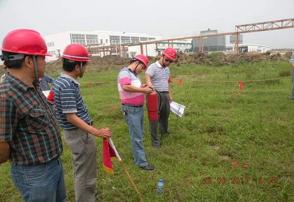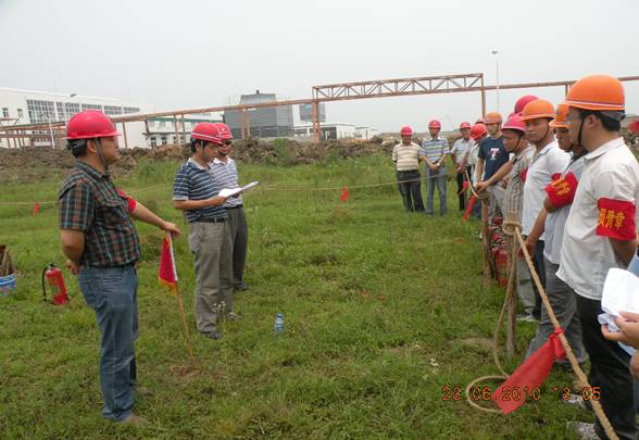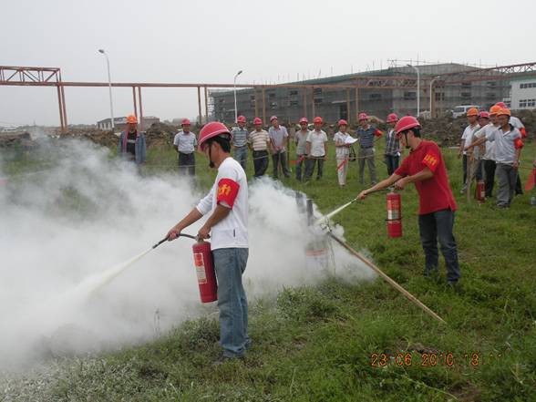 為全面開展好“全國安全生產月”應急預案演練周活動,切實提高企業應對突發火災事故處理能力和水平,2010年6月23日,公司保衛處和生產處牽頭在肥東豐樂農化中間體項目現場進行了一次火災事故應急演練,副總經理劉安俊擔任總指揮,各項目部均派人參加。