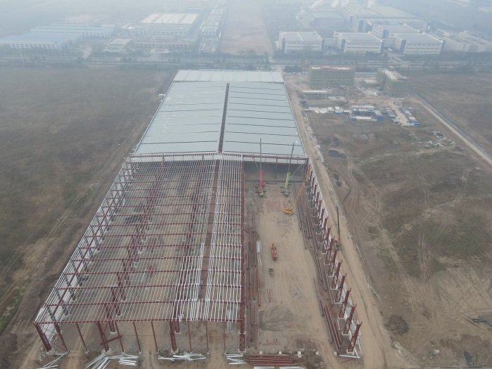 由合肥分公司承建的安徽建工智能鋼構項目正在緊張施工中,現主體架構已初現雛形。11月17日上午,項目部“50米跨屋面梁吊裝”工作正在進行,公司總工程師吳繼成現場指導吊裝工作,并為第一榀屋面梁進行掛紅儀式。公司總經理助理、合肥分公司經理、黨支部書記趙永峰,公司總工辦、安全部等相關部門負責同志參加。