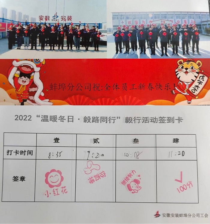 為展示安徽安裝蚌埠分公司員工積極向上的精神風貌,倡導健康環保的生活理念,1月20日上午,分公司工會舉辦了一場主題為“溫暖冬日 毅路同行”的徒步毅行活動,分公司50余名員工參加活動。