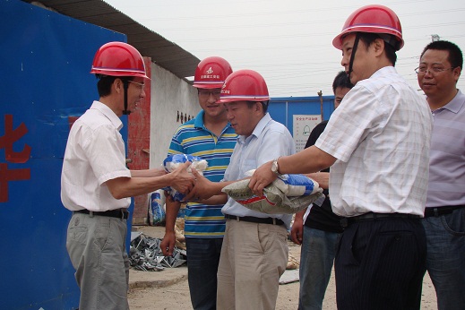 張書記一行首先代表集團(tuán)公司領(lǐng)導(dǎo)向堅(jiān)守在項(xiàng)目上的職工表示親切的慰問。隨后又認(rèn)真聽取了項(xiàng)目部經(jīng)理李紹林就項(xiàng)目工程概況、項(xiàng)目安全生產(chǎn)、安全保護(hù)及創(chuàng)文明示范工地等工作匯報(bào)。張書記勉勵(lì)職工要在高溫季節(jié)努力做好本職工作,項(xiàng)目部要處處做好防暑降溫工作,保證生產(chǎn)安全,保護(hù)好職工的身體健康,保質(zhì)保量的完成工作任務(wù),樹立安徽省安的品牌形象,把品牌打出去,逐步開拓市場。最后,戴書記代表省安向集團(tuán)領(lǐng)導(dǎo)冒著酷暑親臨慰問表示衷心的感謝。他表示:全體省安人將繼續(xù)發(fā)揚(yáng)特別能吃苦、特別能戰(zhàn)斗的精神,戰(zhàn)勝酷暑,奮力攻堅(jiān),保證各項(xiàng)工程任務(wù)順利完成。