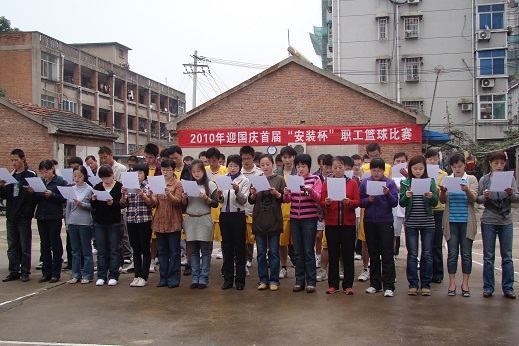 9月28日上午,寂靜已久的公司籃球場熱鬧非凡。由公司工會主辦的2010年迎國慶首屆“安裝杯”職工籃球比賽在此拉開帷幕。來自第壹分公司、蚌埠分公司、安慶分公司、公司機關(guān)的四個代表隊和機關(guān)員工參加了開幕式。
