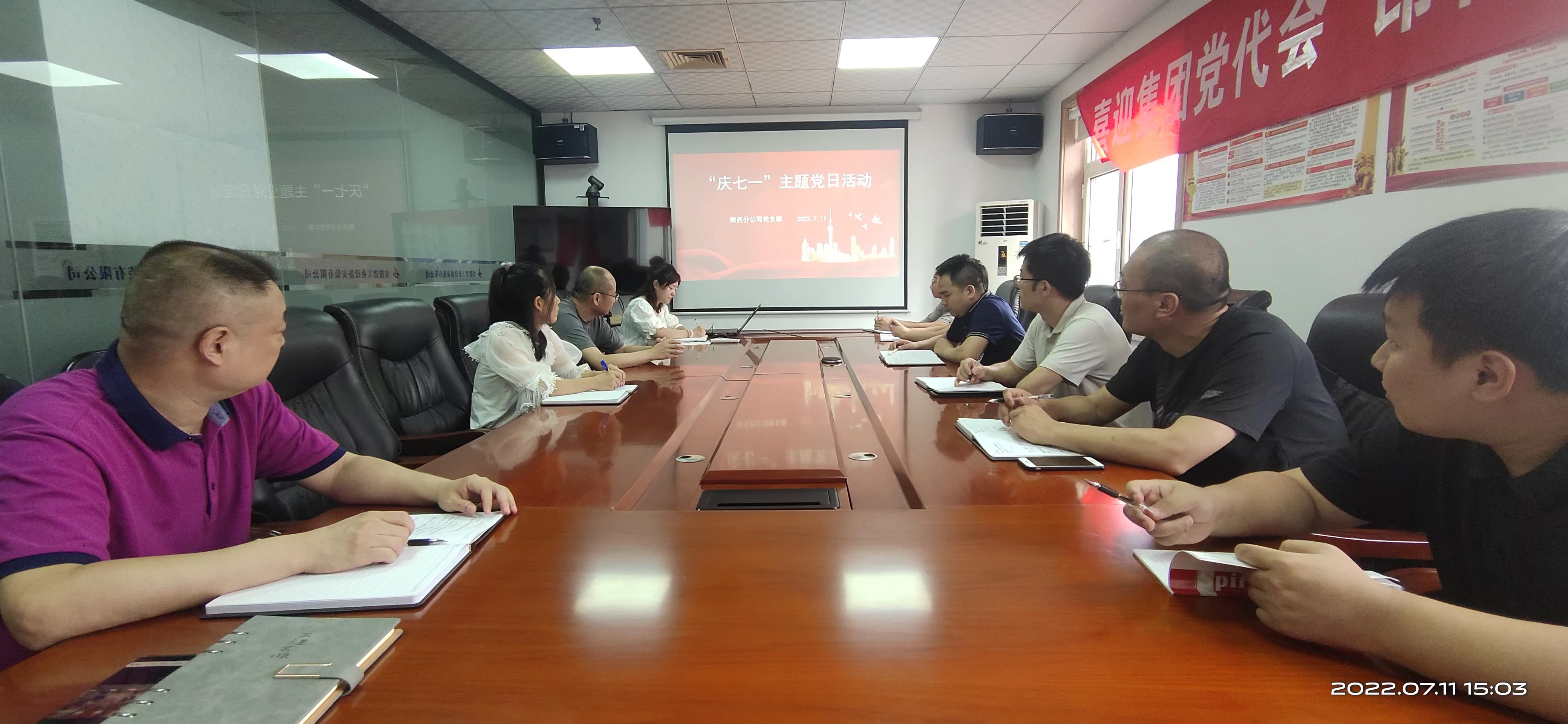 為了慶祝建黨101周年,重溫黨的光輝歷程,弘揚黨的光榮傳統,營造愛黨愛國愛社會主義濃厚氛圍。7月11日下午,陜西分公司黨支部組織全體黨員干部職工在黨員活動室開展了“慶七一”主題黨日活動,重溫入黨誓詞并觀看紅色影片《建黨偉業》。