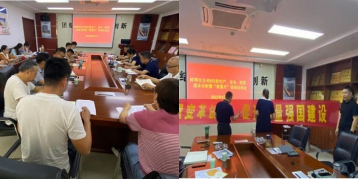 二是營造良好活動氛圍。9月2日-9月5日,分公司所屬項目部迅速召開2022年“質量月”動員會,并通過電子屏幕、橫幅標語等形式宣傳“質量月”活動主題,為質量月活動開展營造了良好氣氛。