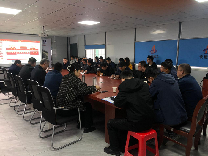 11月23日上午,公司黨委委員、副總經理趙伯平深入項目一線,在房建(裝飾)分公司阜南污水廠項目宣講黨的二十大精神。公司總工程師吳繼成、公司相關部門負責同志及分公司班子成員、全體黨員干部職工近40人參加。