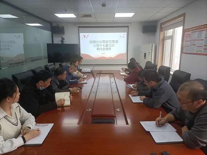 為深入學(xué)習(xí)公司十七屆三次職代會(huì)精神,全面貫徹落實(shí)會(huì)議部署要求。2月7日,陜西分公司組織召開專題學(xué)習(xí)會(huì),會(huì)議由分公司經(jīng)理、黨支部書記張寶深主持,分公司機(jī)關(guān)全體員工參會(huì)。
