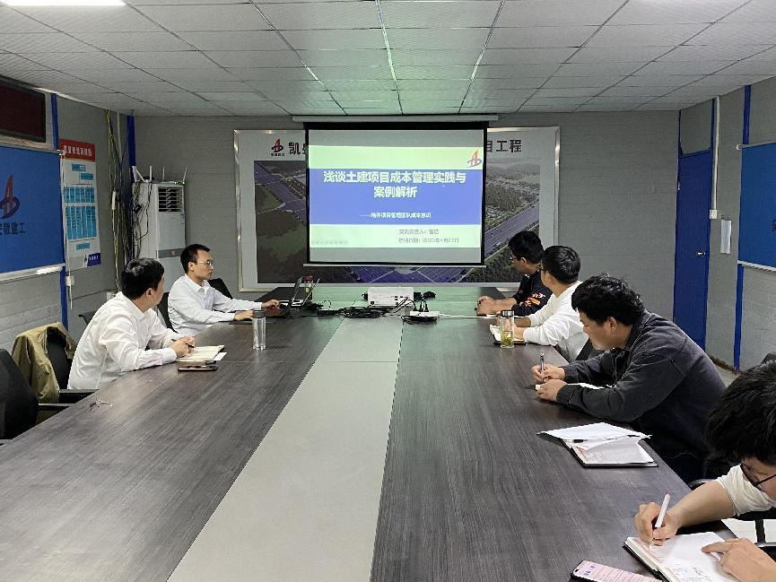 曾浩圍繞“土建項(xiàng)目成本管理實(shí)踐與案例解析”主題,分別從投標(biāo)測(cè)算、成本策劃、過(guò)程管控、竣工結(jié)算等四個(gè)方面與全體參會(huì)人員進(jìn)行了研討交流。交流活動(dòng)從材料到成本,從技術(shù)到安全質(zhì)量,一一進(jìn)行了細(xì)致的講解,在輕松愉快的交談氛圍中進(jìn)一步傳達(dá)學(xué)習(xí)了分公司的管理方針和標(biāo)準(zhǔn)流程,雙方對(duì)各自的項(xiàng)目部管理工作交換了意見建議。與會(huì)人員紛紛表示,要以過(guò)硬的技術(shù)、創(chuàng)新的思維、堅(jiān)實(shí)的安全保障,為持續(xù)推進(jìn)項(xiàng)目基礎(chǔ)管理不懈努力!