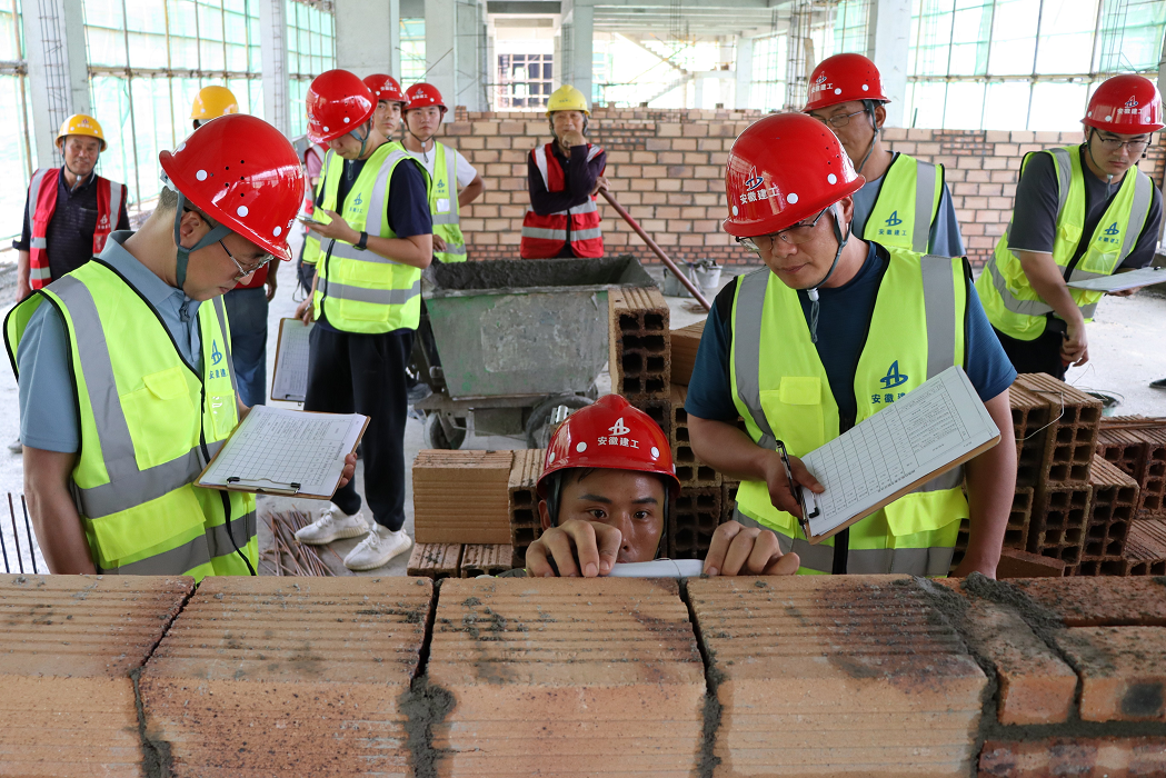 為深入學習宣傳貫徹習近平新時代中國特色社會主義思想和黨的二十大精神,大力弘揚工匠精神,厚植工匠文化,5月31日下午,房建(裝飾)分公司黨支部在阜南縣第一小學項目部舉行了“學思踐悟二十大 崗位比武促發展”砌筑、抹灰技能大賽活動。來自項目各勞務單位的14組參賽隊伍,20多名工人代表參加比賽。比賽邀請公司總工辦及分公司領導班子成員和部分項目經理擔任評委。