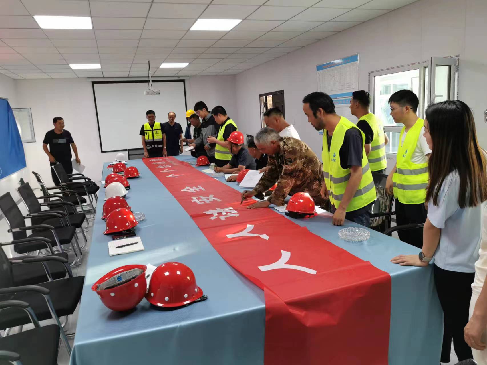 啟動(dòng)儀式上,項(xiàng)目部安全員向大家宣讀此次安全月活動(dòng)的活動(dòng)方案,播放安全教育、警示類視頻,并著重講解施工現(xiàn)場及生活區(qū)一些常見而易忽視的安全隱患及防范措施,提升管理人員在面對(duì)風(fēng)險(xiǎn)時(shí)的安全意識(shí),并指出確保安全是各類生產(chǎn)活動(dòng)的首要任務(wù),全員要樹立安全第一、生命至上的理念。分公司所屬項(xiàng)目部管理人員要嚴(yán)格落實(shí)安全生產(chǎn)責(zé)任制,樹牢安全紅線意識(shí),通過宣傳教育、實(shí)戰(zhàn)演練、隱患排查等方式,讓分公司全體員工和所屬項(xiàng)目所有參建人員更積極主動(dòng)參與到各項(xiàng)安全生產(chǎn)活動(dòng)中來,清楚各自在安全體系管理中的責(zé)任及意義,努力營造一個(gè)“人人要安全、人人管安全”的良好安全管理氛圍,提升分公司安全管理水平。在儀式的最后,所有人員在安全員的帶領(lǐng)下莊嚴(yán)宣誓,并在印有“人人講安全,個(gè)個(gè)會(huì)應(yīng)急”的橫幅上進(jìn)行安全承諾簽名。