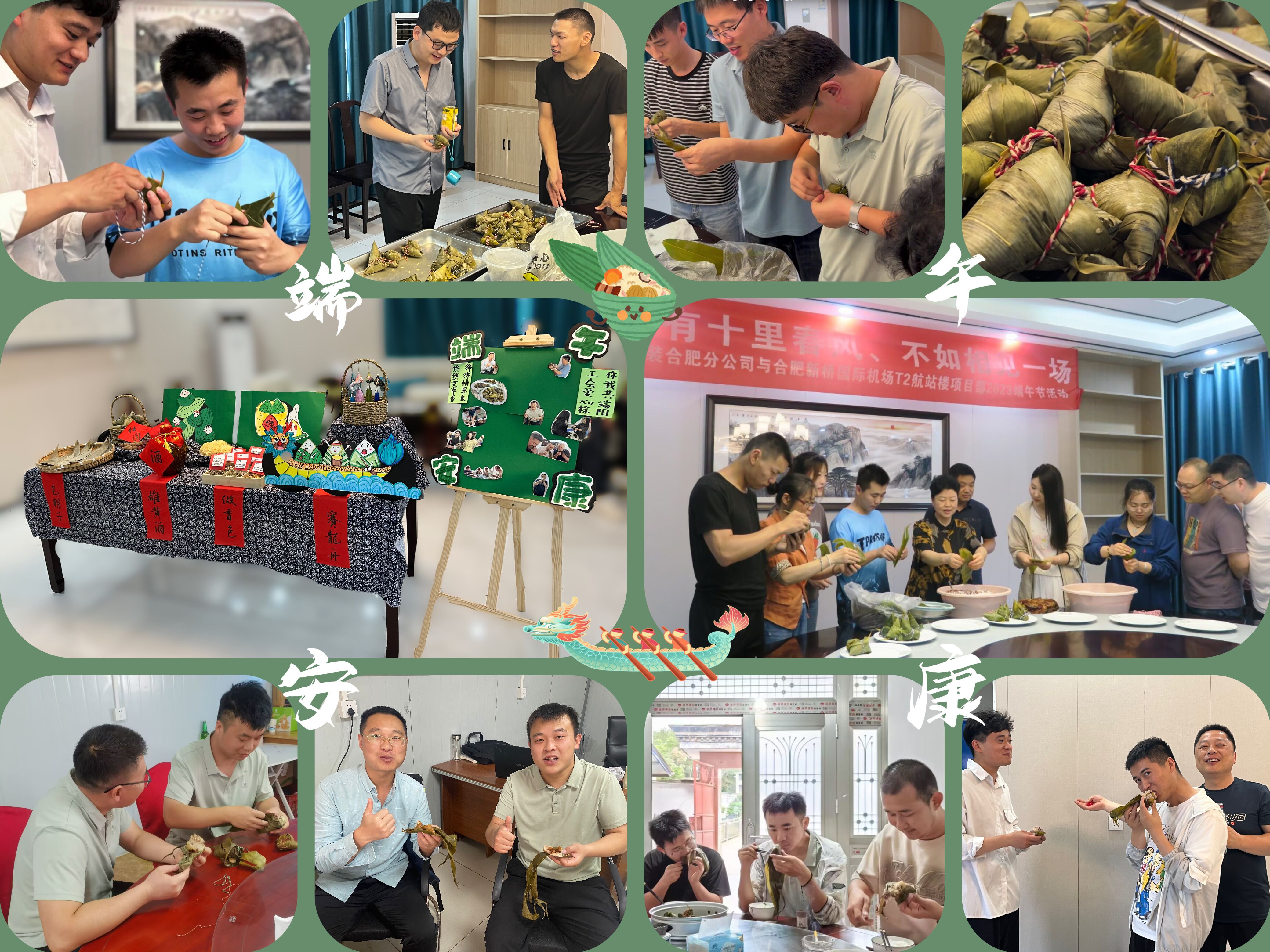 端午臨中夏,時清日復(fù)長,為傳承和弘揚中華民族傳統(tǒng)文化,豐富職工群眾的精神文化生活,在端午傳統(tǒng)節(jié)日來臨之際,合肥分公司邀請合肥新橋國際機場T2航站樓項目部共同開展了“粽有十里春風(fēng)、不如相見一場”主題活動,讓大家在項目上也能感受到家中的“粽香濃情”,感受到企業(yè)大家庭的關(guān)懷和溫暖。