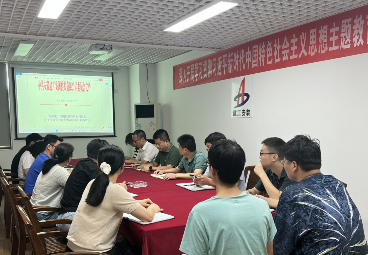 7月14日,建工安裝電梯分公司在分公司會議室召開學習集團全面深化改革推動創新發展動員部署暨主題教育黨課報告會精神宣貫會。分公司班子成員,在肥全體黨員、職工參加會議。