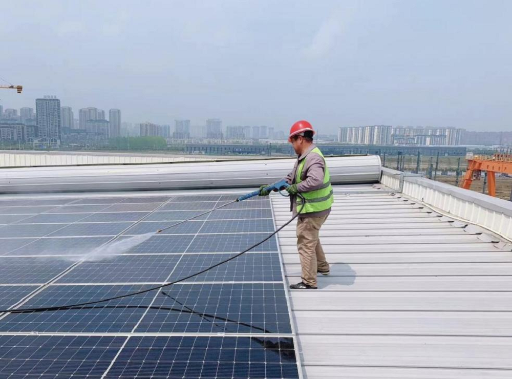 “灰層遮擋了光伏板的主體,而此刻我手中的高壓水槍,猶如一把犀利的掃帚,能夠快速清除板面的泥土和污垢,既節(jié)省了人力和時(shí)間,又進(jìn)一步提高了發(fā)電效益。清洗后的光伏板,仿佛獲得了源源不斷的動(dòng)力,不知疲倦地輸出著清潔能源。”