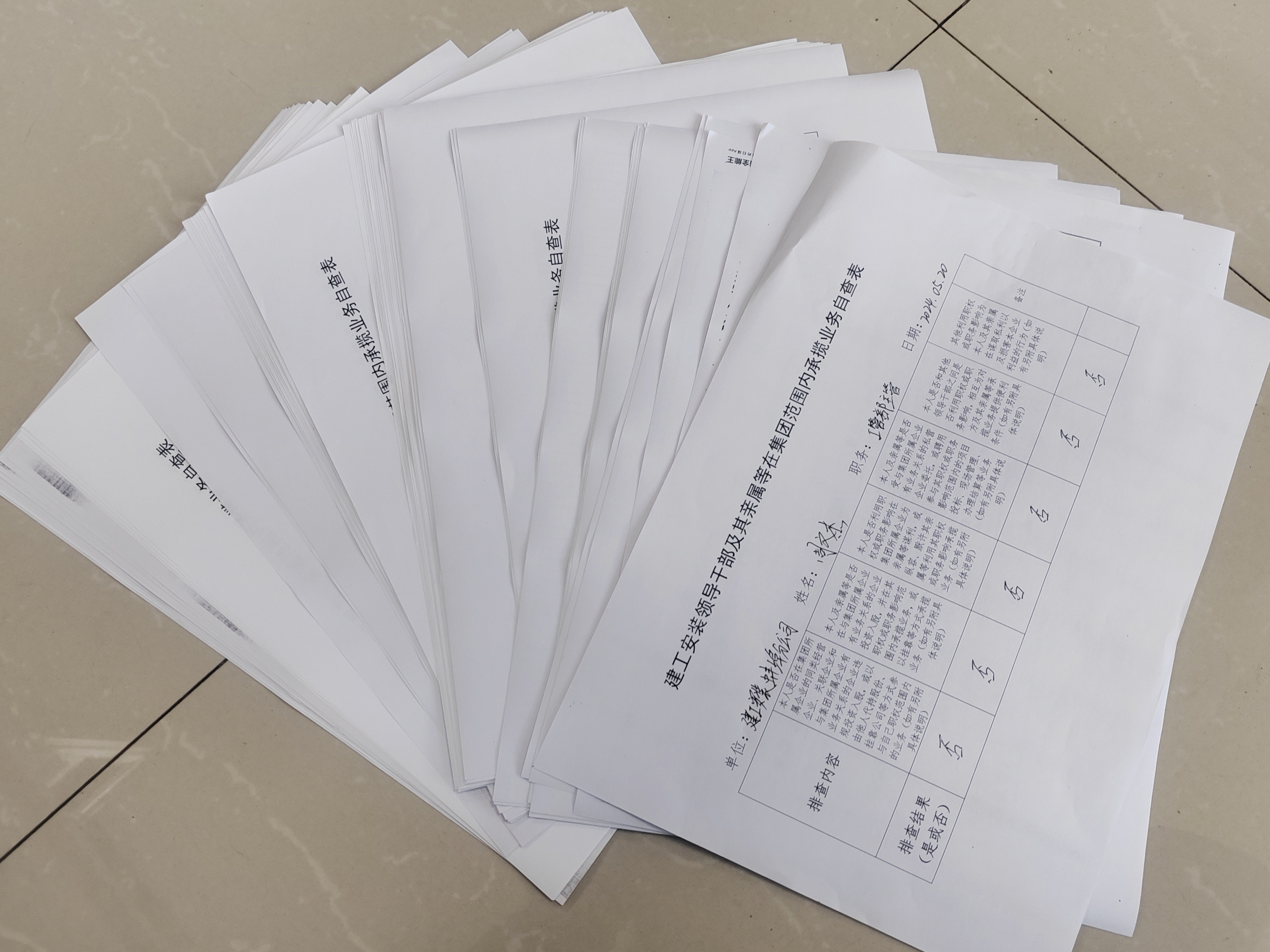 《建工安裝領導干部及其親屬等在集團范圍內承攬業務自查表》
