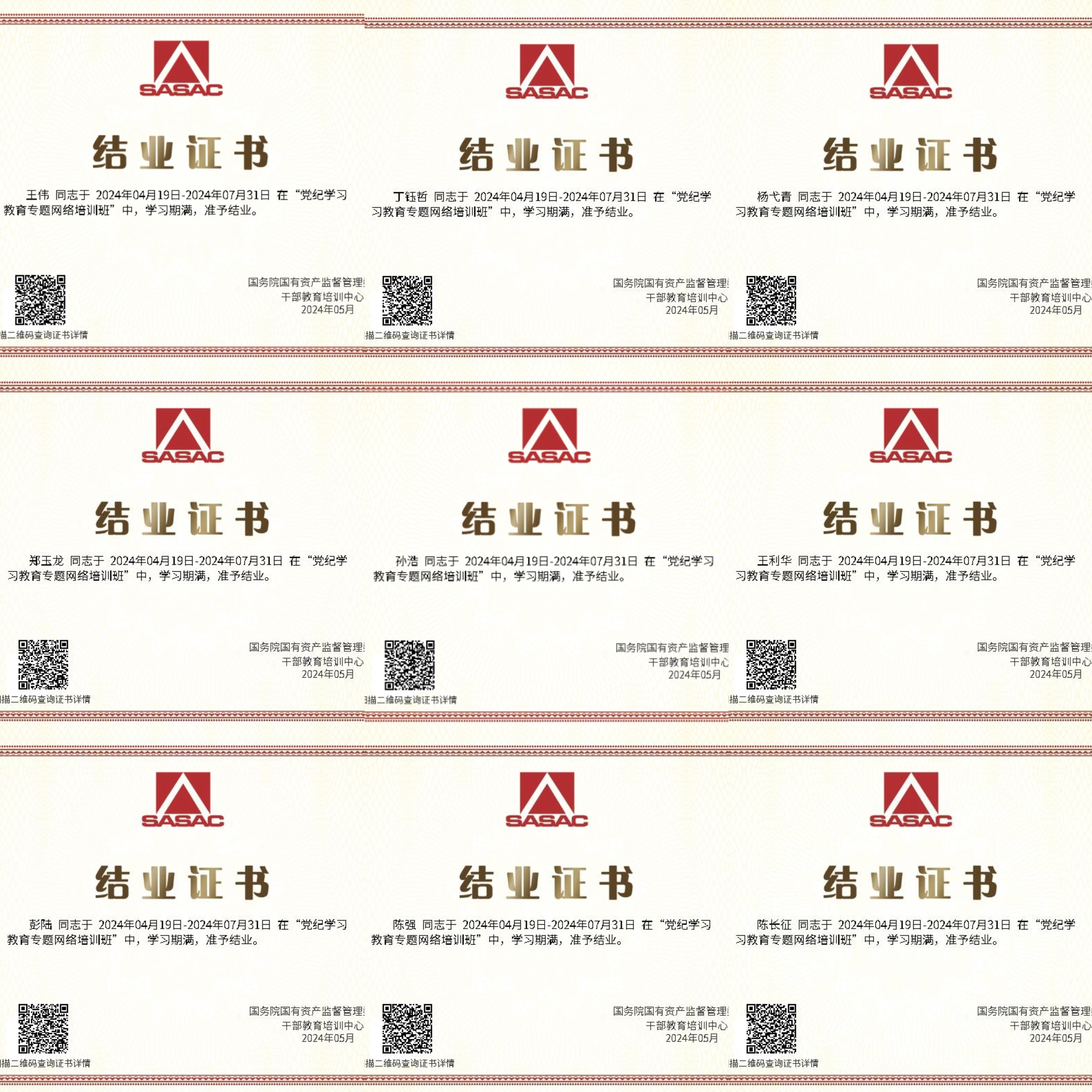 此外,分公司黨支部還積極利用“學習強國”“國資e學”app等線上方式鼓勵黨員干部、項目員工積極學習黨紀教育相關內容,參與學習人員均取得黨紀學習教育專題網絡培訓班結業證書。