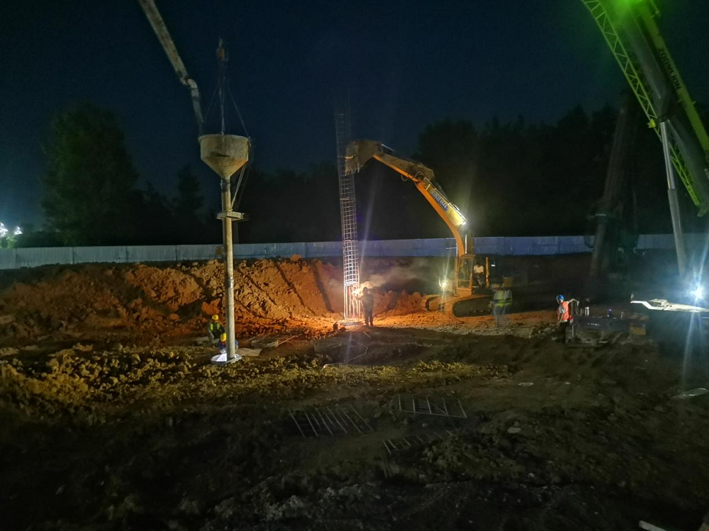 時間緊、任務(wù)重,為了全速推進(jìn)施工進(jìn)度,項(xiàng)目部堅持每天召開“碰頭會”,解決當(dāng)天施工現(xiàn)場各種問題,不斷優(yōu)化施工組織方案,保障資源配置,把任務(wù)分解到天、具體到點(diǎn),明確責(zé)任人,采取增大工作面、增加施工班組人員和機(jī)械等有效措施加快施工進(jìn)度,加班加點(diǎn)施工,進(jìn)入連續(xù)作戰(zhàn)狀態(tài),奏響了“白+黑”不停歇的沖刺戰(zhàn)歌。目前,在項(xiàng)目部的連續(xù)奮戰(zhàn)和努力下,六鋼大廈酒店基礎(chǔ)部位旋挖灌注樁澆筑已完成,11-7軸/a-d軸開挖完成。正處于樁基承臺施工階段。