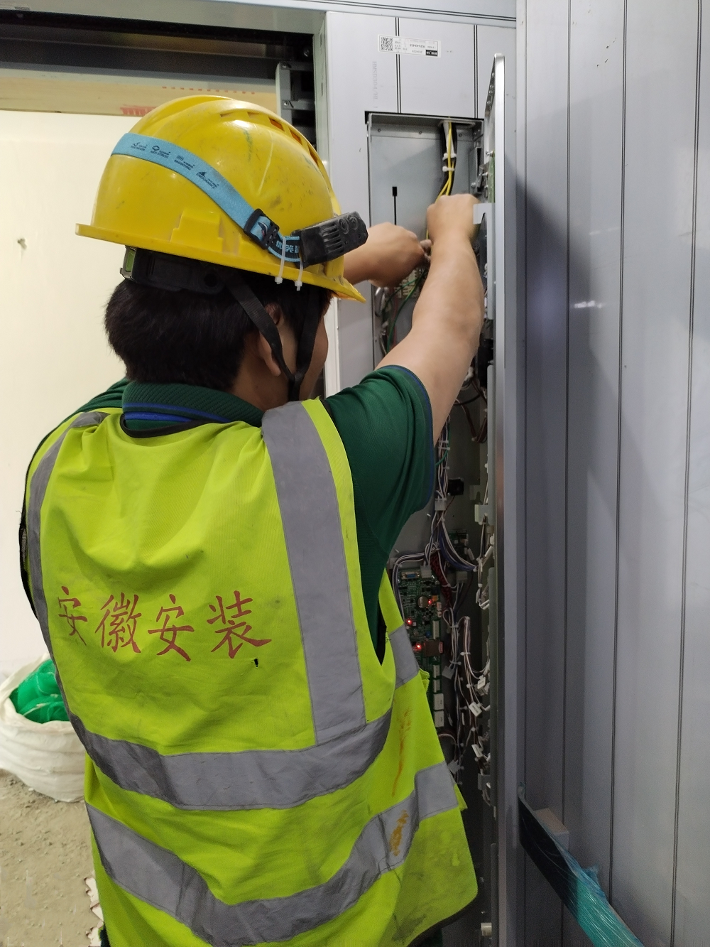 廬陽區清瀾苑項目,施工人員正在調試電梯,據悉,目前清瀾苑項目55臺電梯,已完成安裝50臺,正處于調試廠檢階段。