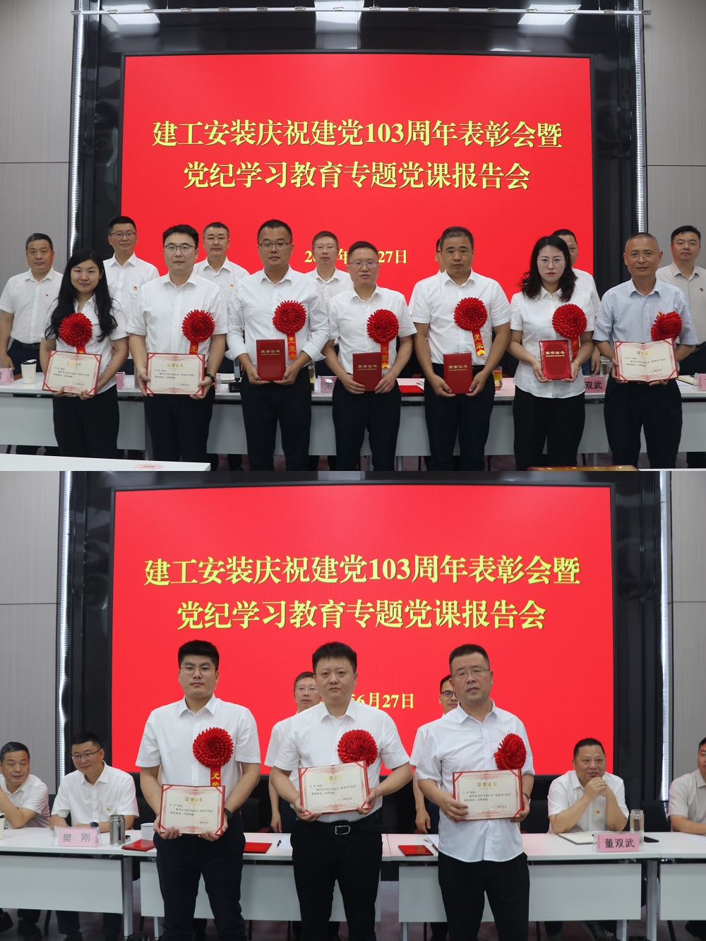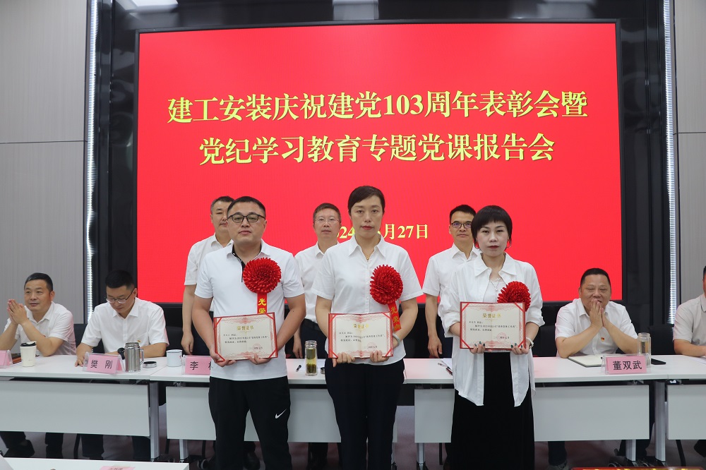 為慶祝中國共產(chǎn)黨成立103周年,扎實推進黨紀(jì)學(xué)習(xí)教育走深走實。6月27日上午,建工安裝黨委召開慶祝建黨103周年表彰會暨黨紀(jì)學(xué)習(xí)教育專題黨課報告會。公司領(lǐng)導(dǎo)班子成員出席會議,會議由公司黨委副書記、副總經(jīng)理周正平主持。