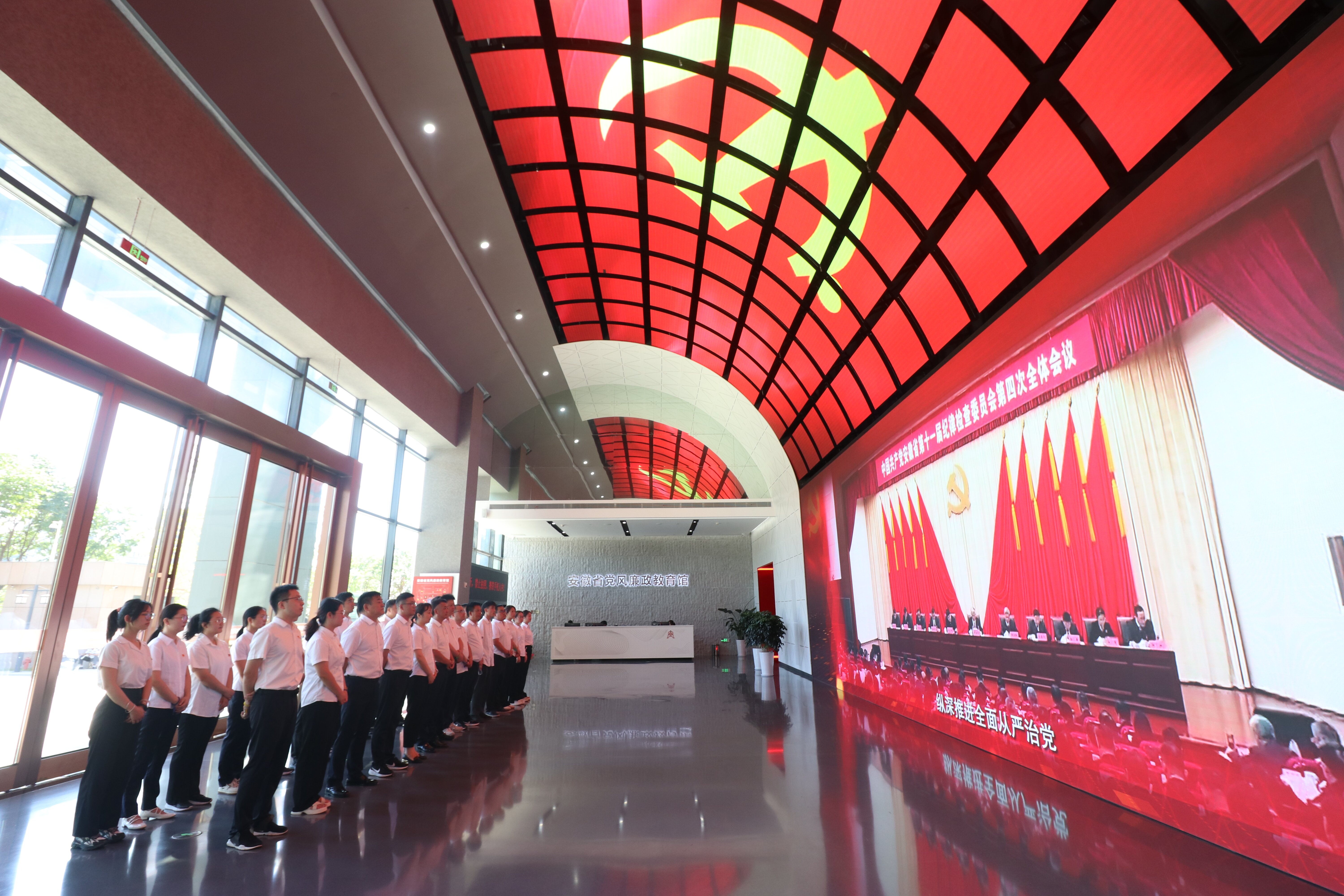 進入教育館,全體人員集中觀看了《永遠在路上》專題片。隨后,依次參觀了“紀律立黨·從嚴治黨”“廉潤江淮·清風揚帆”“以案為鑒·警鐘長鳴”“不忘初心·永葆清廉”四個展廳。跟隨著講解員的步伐,通過聆聽講解、觀看視頻圖片、場景還原、體驗空間等形式,全方位學習回顧了建黨百年來的紀律建設史,以及安徽省委落實全面從嚴治黨、深入開展黨風廉政建設和反腐敗斗爭的豐碩成果。一組組觸目驚心的數字、一幕幕聲淚俱下的懺悔、一段段發人深省的旁白,令參觀的黨員干部職工受警醒、明底線、知敬畏。參觀結束后,全體黨員面向黨旗,舉起右手,莊嚴宣誓,重溫入黨時的承諾,在鏗鏘有力的宣誓聲中回望初心使命。本次活動大家還集中觀看了30分鐘警示教育片。