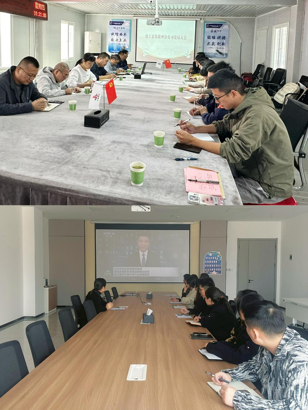 近日,建工安裝滁州分公司黨支部分別在機關和項目一線召開會議,專題傳達學習習近平總書記考察安徽重要講話精神,分公司領導班子成員、黨員、機關及所屬項目部員工參會。