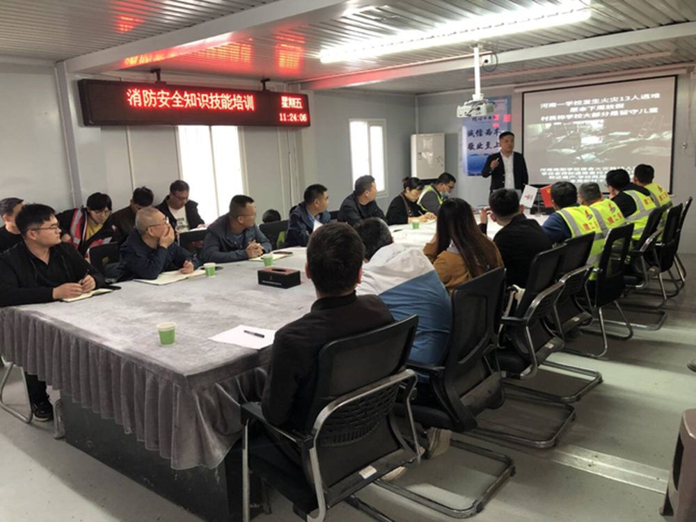 為進一步提高全員消防意識,增強員工面對突發事件自防自救的能力,11月15日滁州分公司以“消防安全宣傳月”為契機,在新橋智能制造產業園項目舉辦了一場消防安全知識技能培訓。分公司領導班子、機關各部門負責人、項目經理、項目部全體管理人員和部分勞務班組長等參加了培訓活動。