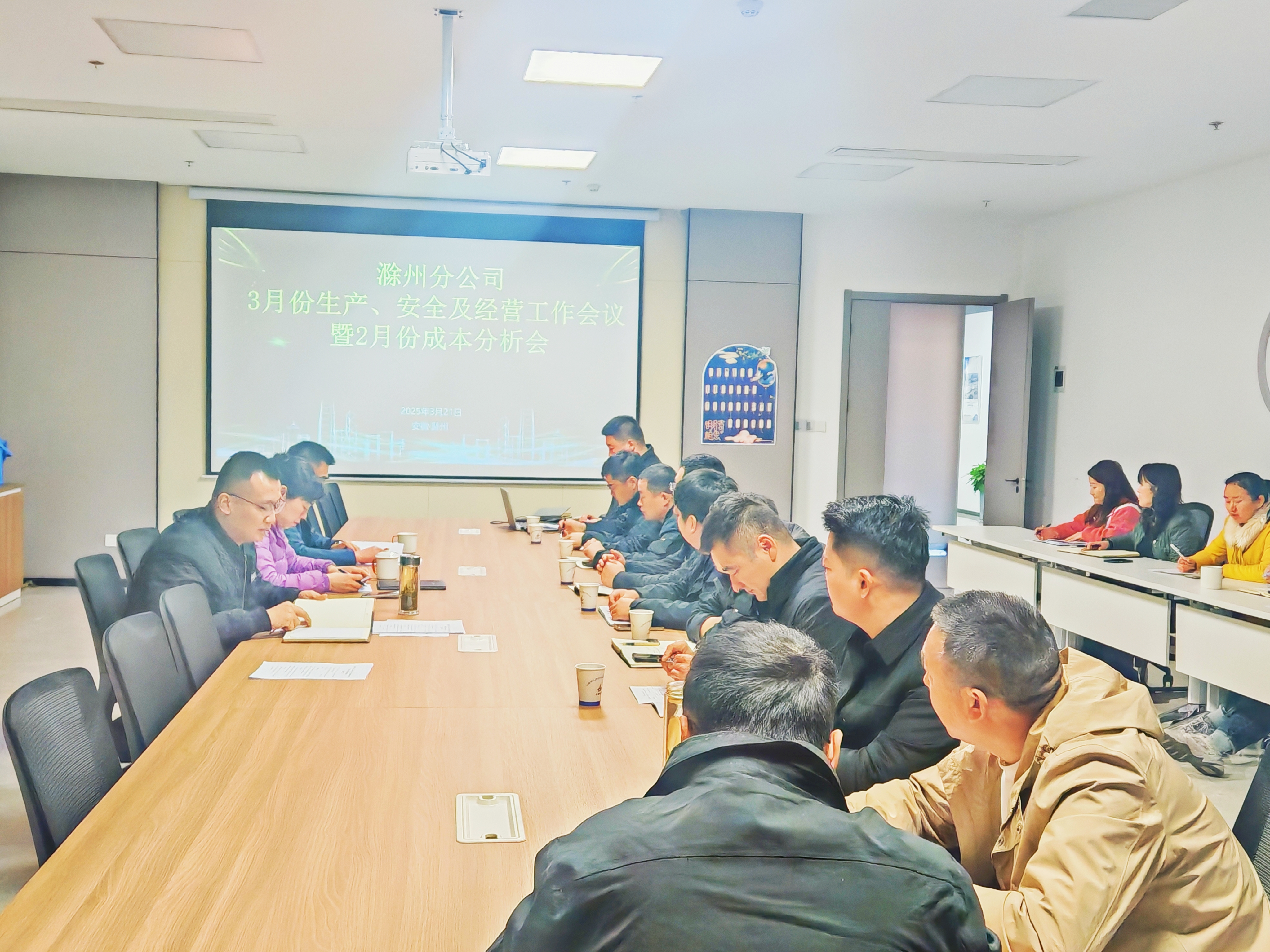 2025年3月21日上午,建工安裝滁州分公司組織召開3月份生產、安全及經營工作會議暨2月份成本分析會。分公司領導班子成員、各項目經理、機關各部門負責人等參加會議,會議由分公司副經理張漢軍主持。