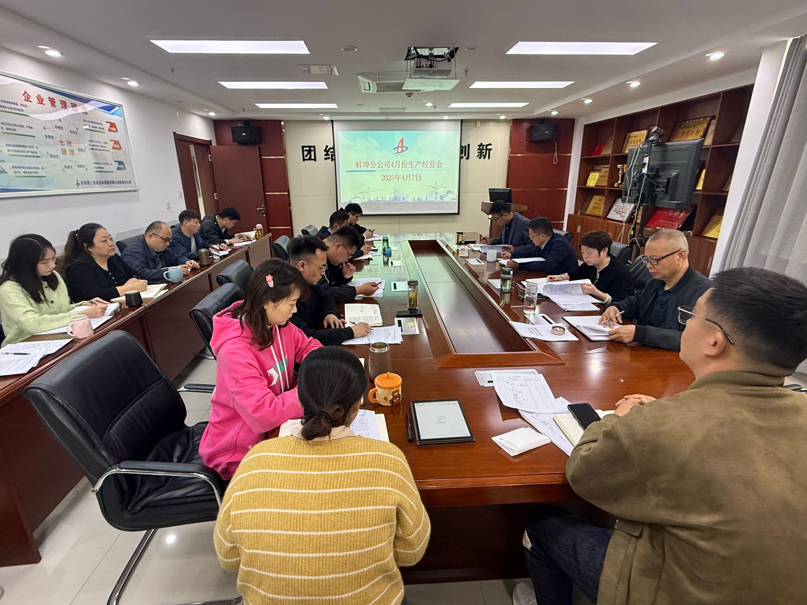 4月7日上午,蚌埠分公司組織召開4月份生產經營調度會,分公司領導班子成員、所屬各項目部、機關各部門負責人及工程管理部全體員工參加會議。會議由分公司副經理張斌主持。