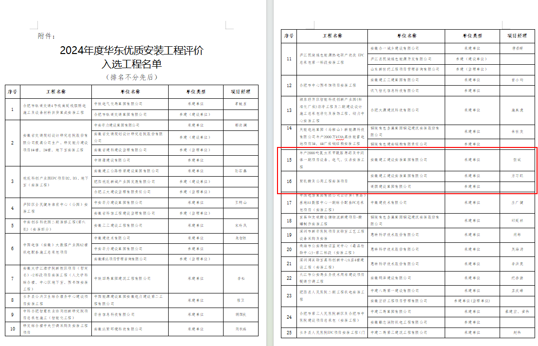 喜報!建工安裝蚌埠分公司承建的輝隆項目入選2024年度“華東優質安裝工程”